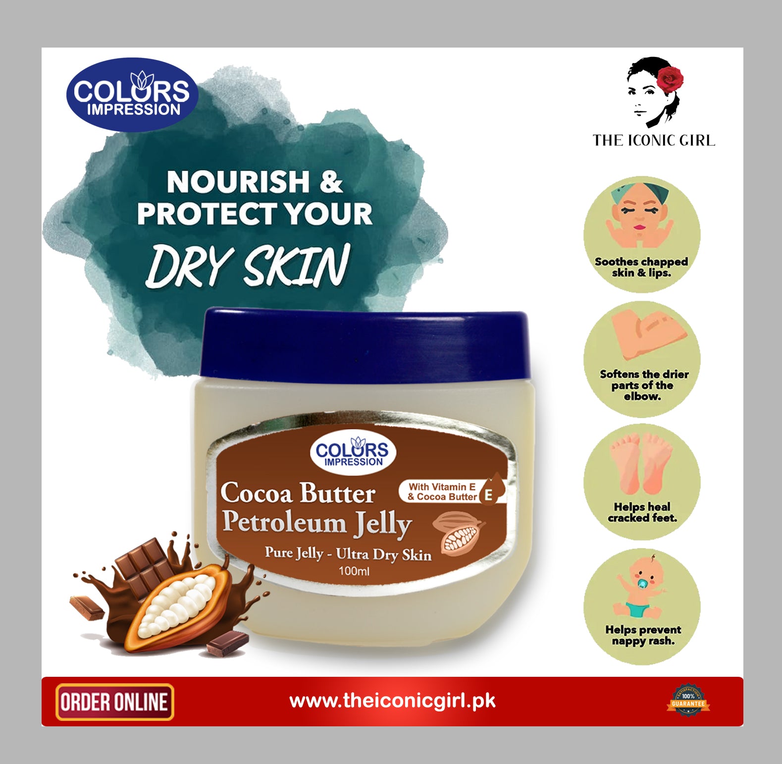 Colors Impression Petroleum Jelly is specially formulated to deeply moisturize and protect your skin from damage. Its rich texture absorbs easily into the skin, helping to strengthen the natural skin barrier while locking in long-lasting hydration.